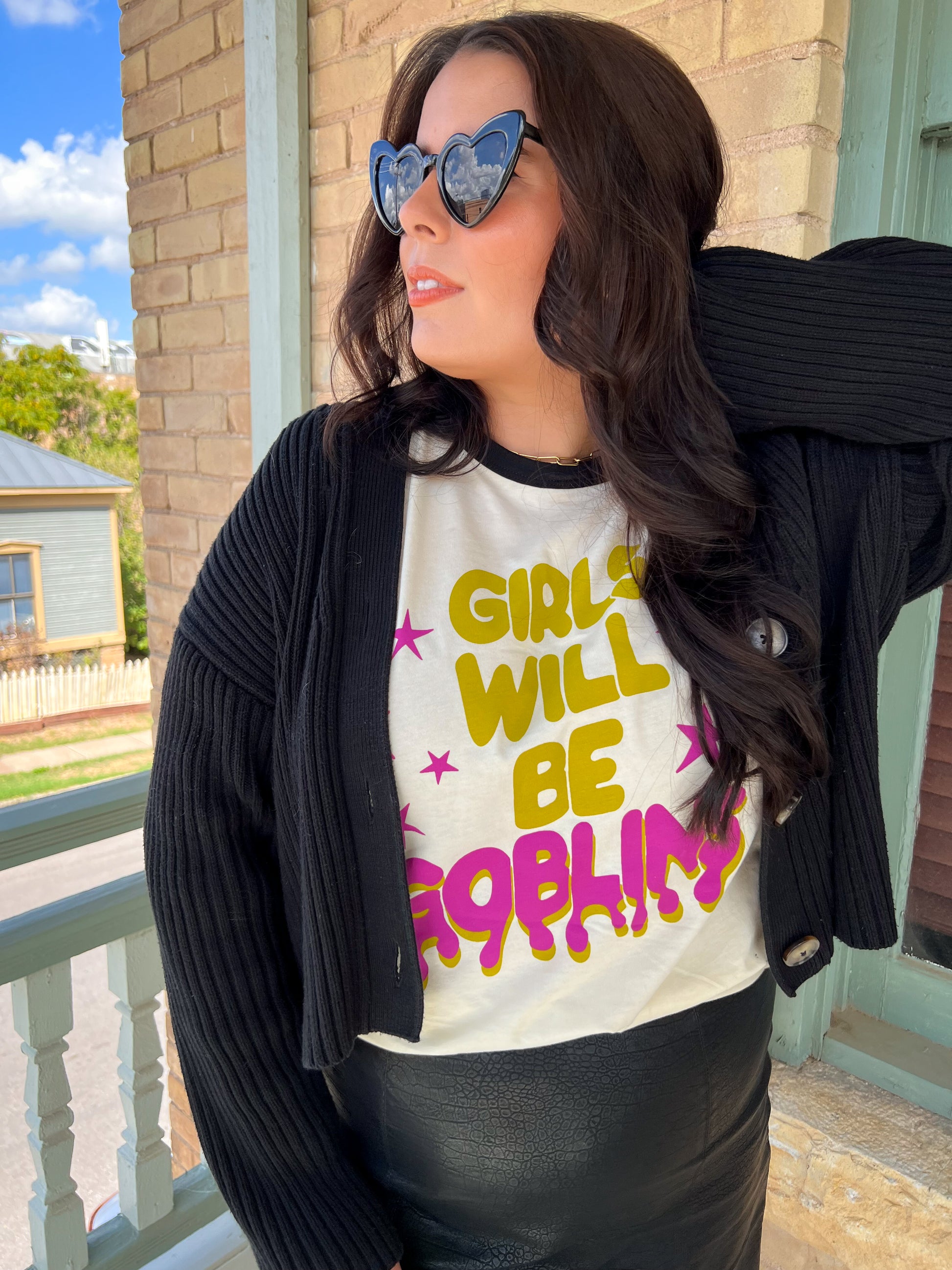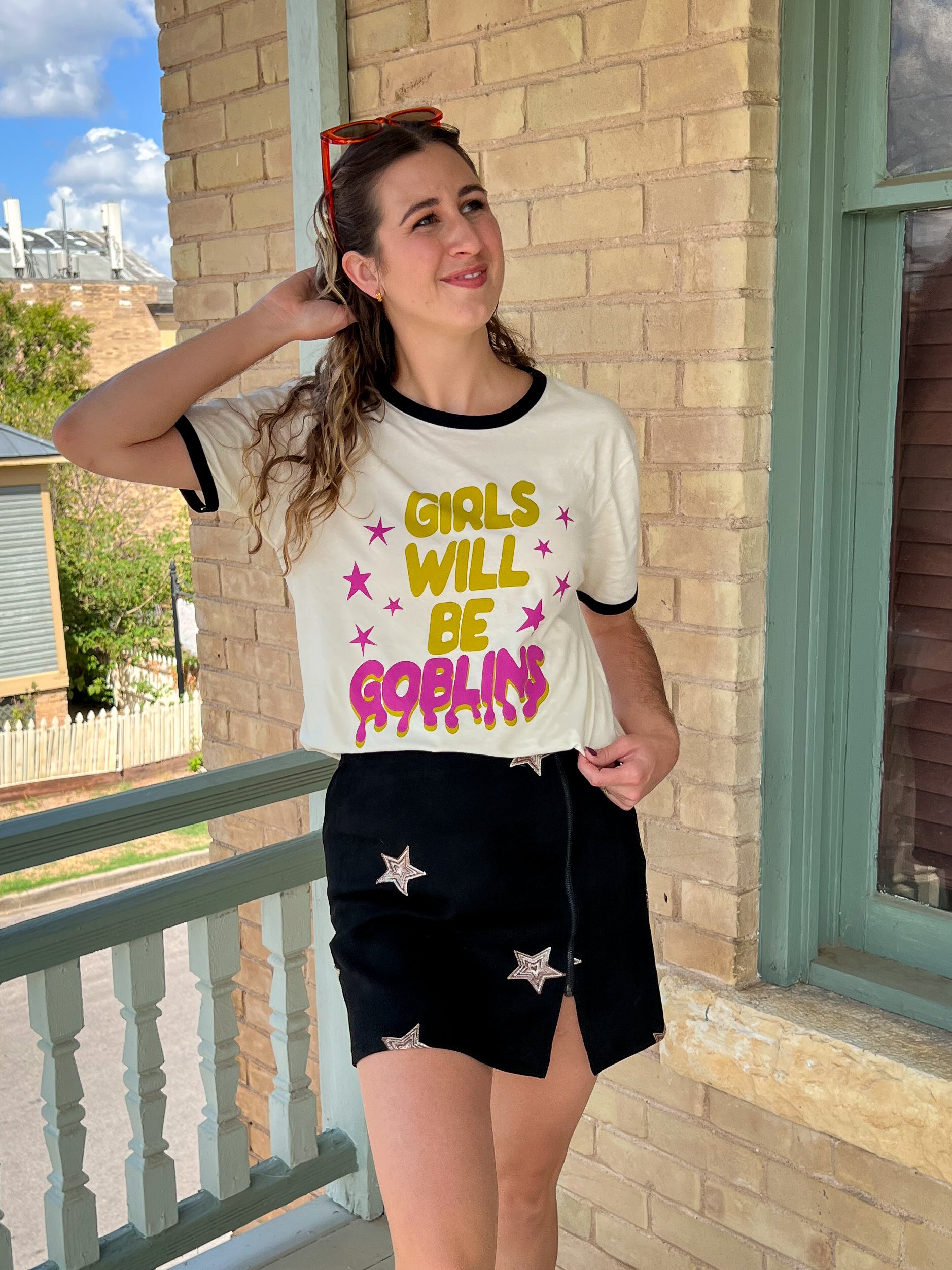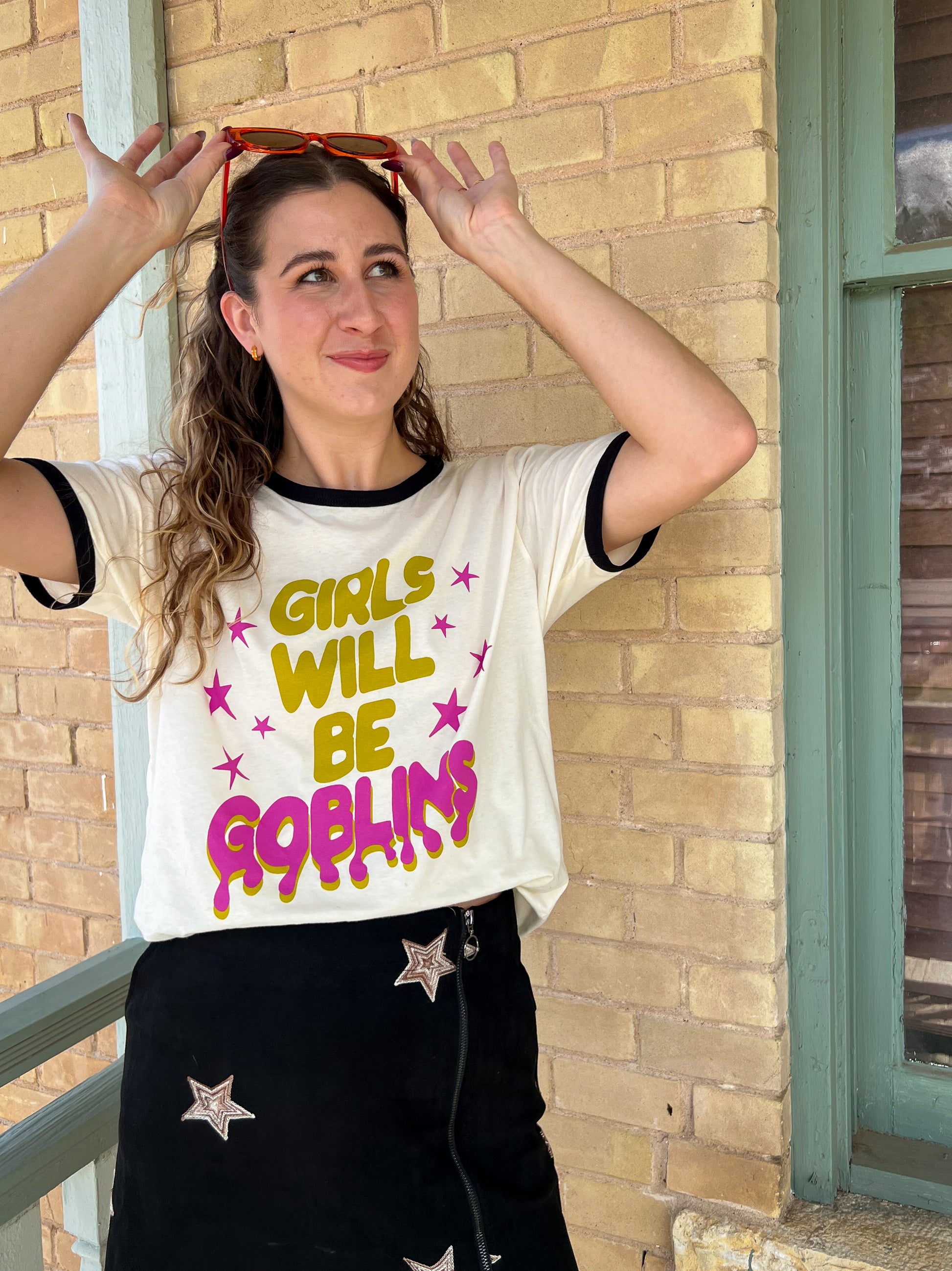 girls will be goblins ringer tee